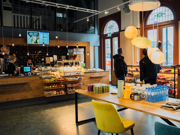 De kiosk mag dan weg zijn, daarvoor in de plaats is de StationsHuiskamer gekomen; een wachtruimte waar zaken als koffie en een broodje te krijgen zijn. Deze zit op dezelfde locatie als waar jarenlang de stationsrestauratie zat. Een jaar geleden had die echter geen vloer, een lelijk plafond en twee ingangen minder. Het contrast is groot. Het originele plafond is opgeknapt en weer zichtbaar. „En we hebben bestaande ornamenten teruggebracht.”